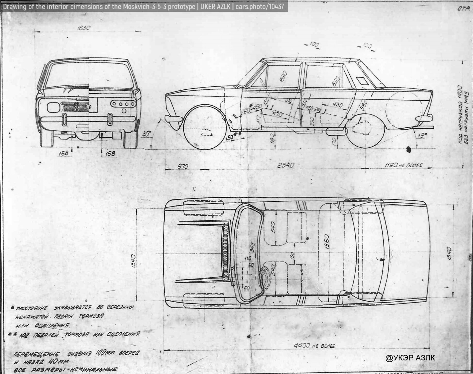 Drawing of the interior dimensions of the Moskvich-3-5-3 prototype