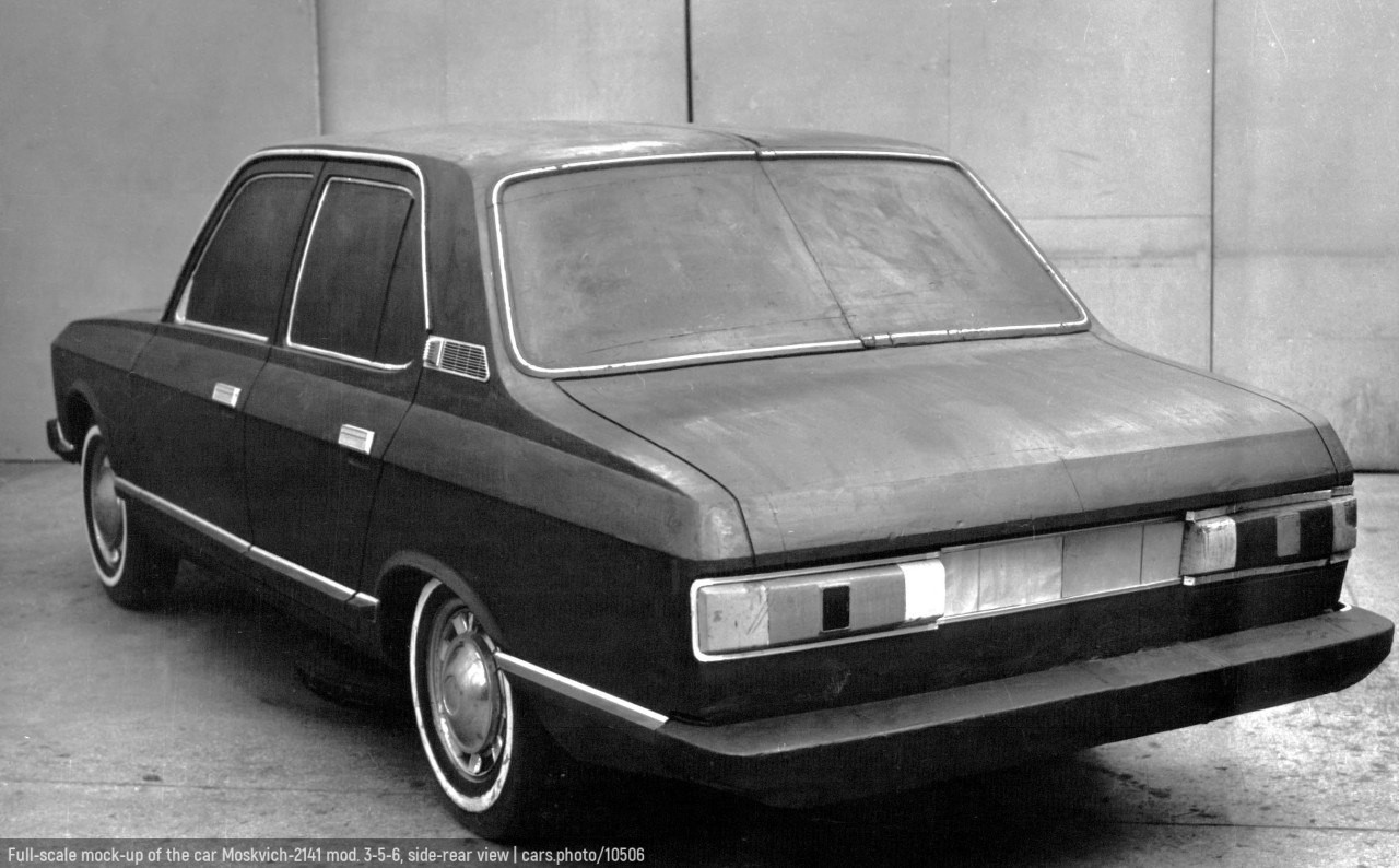 Full-scale mock-up of the car Moskvich-2141 mod. 3-5-6, side-rear view