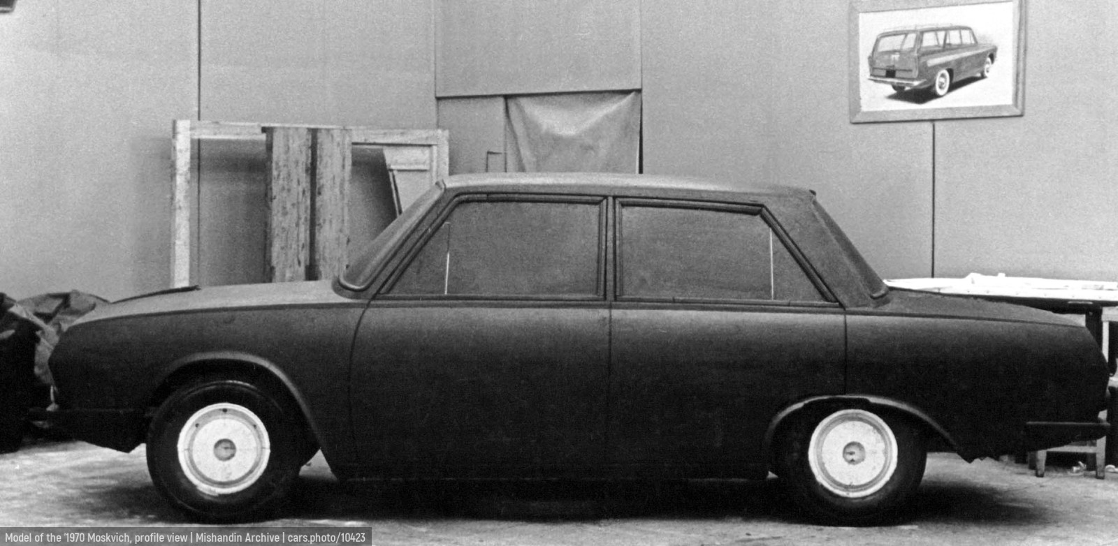 Model workshop of MZMA, approximately 1965. The car already shows some features of the future Moskvich-3-5-1 prototype.
