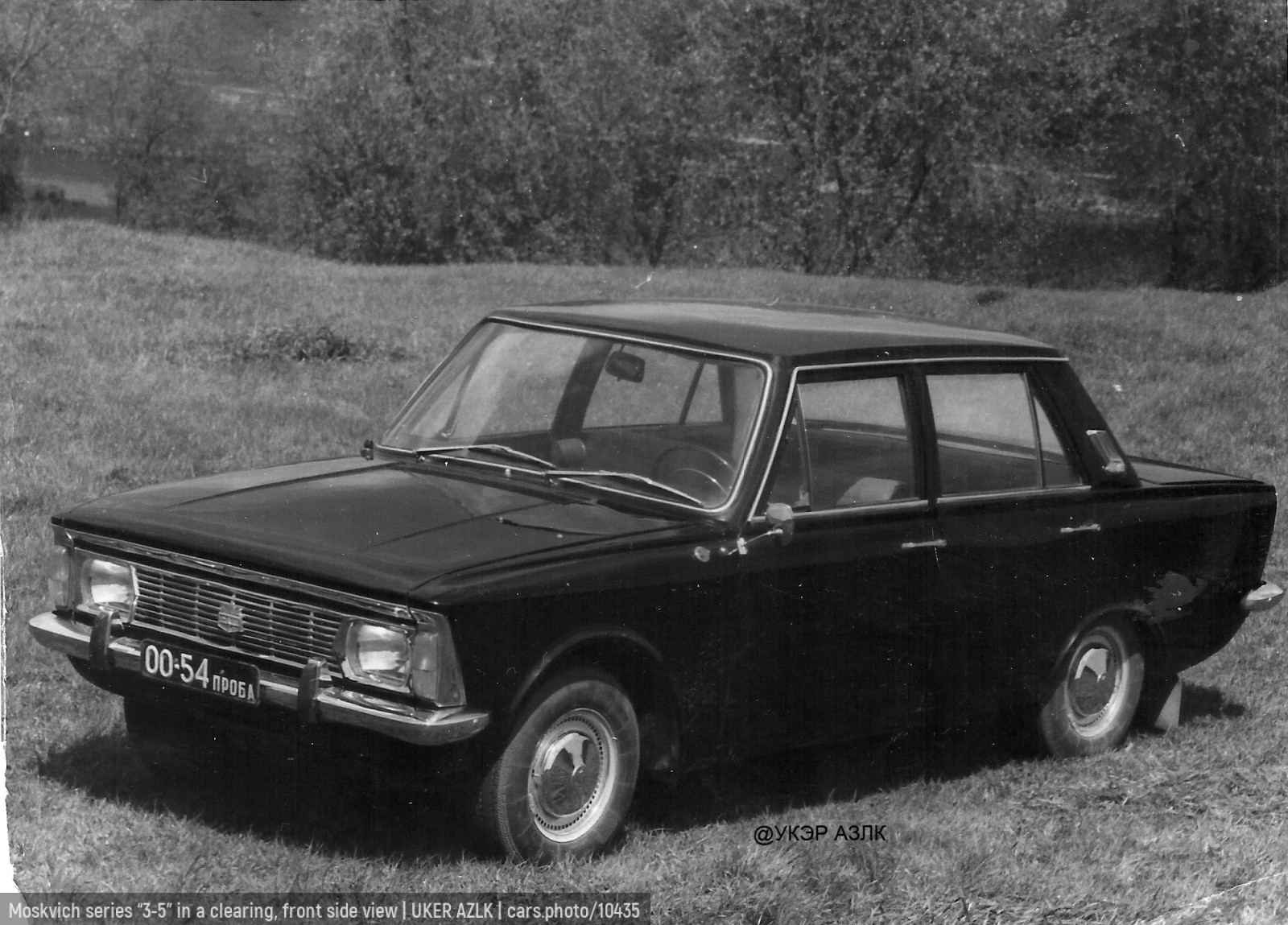 Moskvich series “3-5” in a clearing, front side view