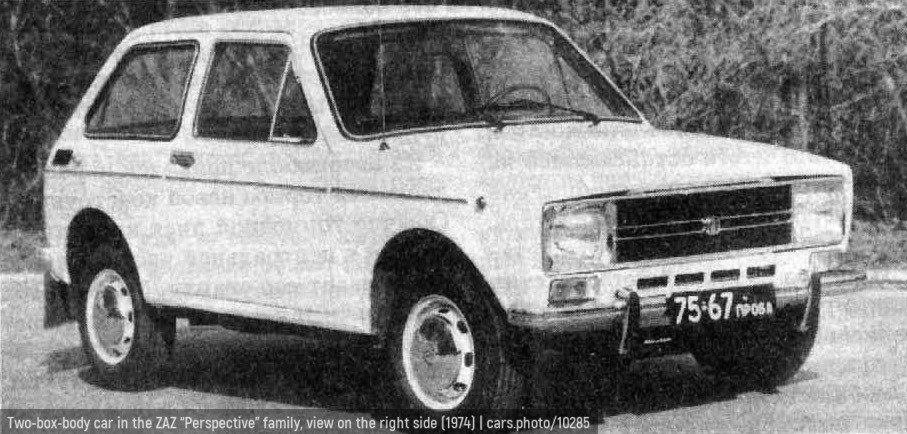 Two-box-body car in the ZAZ “Perspective” family, view on the right side (1974)