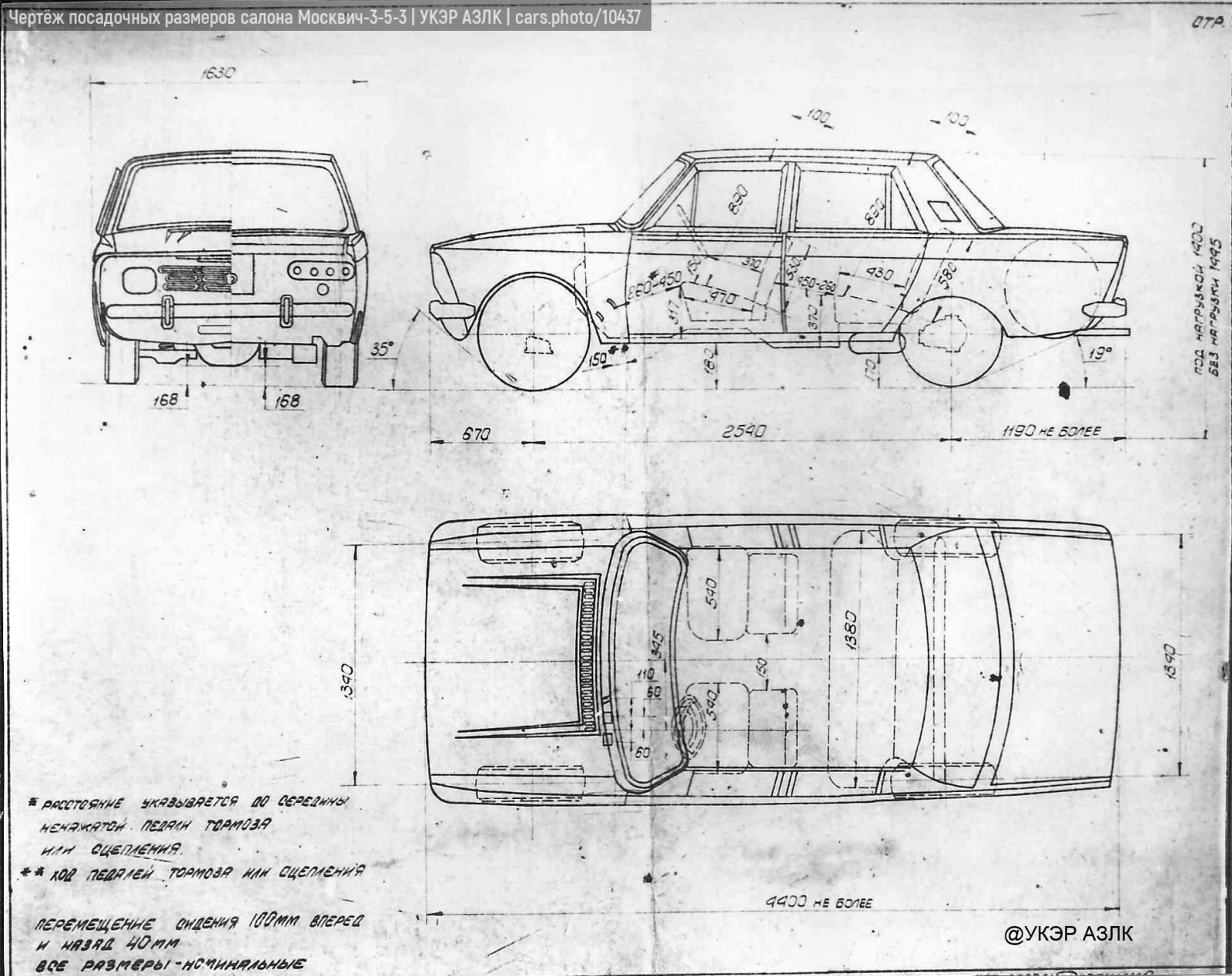 Чертёж посадочных размеров салона Москвич-3-5-3