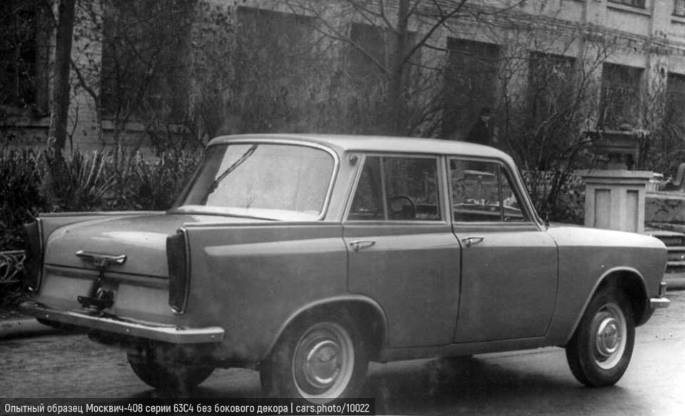 Опытный образец Москвич-408 серии 63С4 без бокового декора, вид сзади