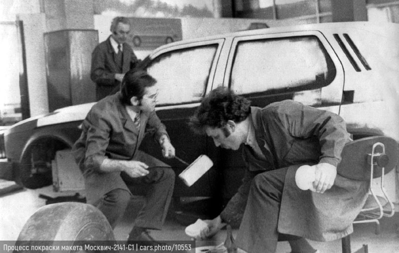 Процесс покраски макета Москвич-2141-С1, вид сбоку