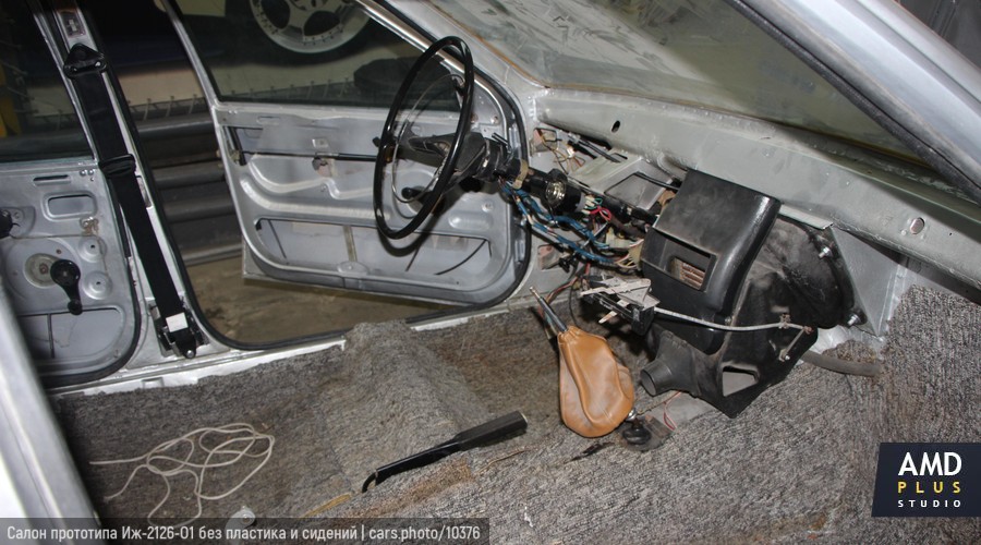 Салон прототипа Иж-2126-О1 без пластика и сидений, вид сбоку