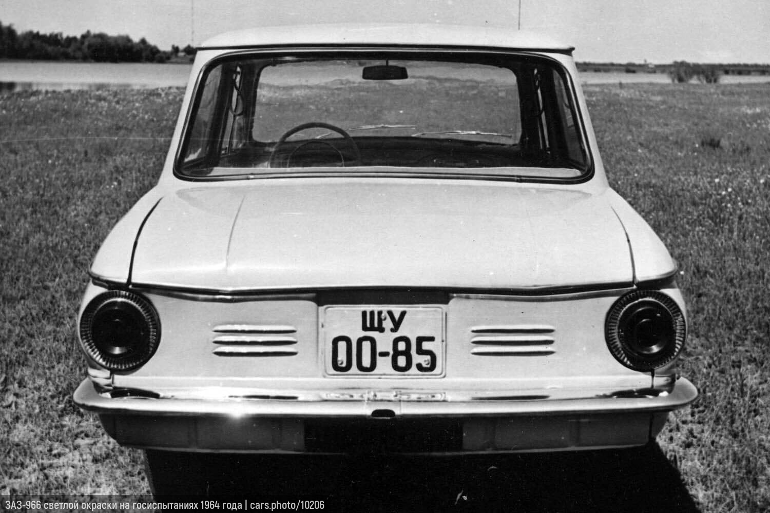 ЗАЗ-966 светлой окраски на госиспытаниях 1964 года, вид сзади